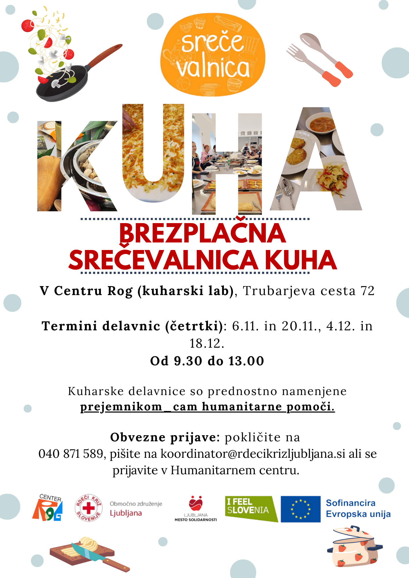 Za prijavo na Srečevalnico kuha, izpolnite prijavo, pokličite telefonsko številko 040 871 589 ali pišite na koordinator@rdecikrizljubljana.si.