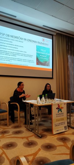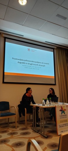 Na dogodku smo aktivno prispevali k strokovni razpravi. Strokovna sodelavka Klara Golob in prostovoljka iz Skupine za psihosocialno pomoč Polona Kladnik sta predstavili prispevek z naslovom Prostovoljska psihosocialna podpora ob izrednih dogodkih in drugih kriznih situacijah. V njem sta poudarili ključno vlogo usposobljenih prostovoljcev, ki s strokovno vodenim pristopom nudijo psihosocialno oporo posameznikom in skupnostim ter prispevajo k hitrejšemu okrevanju po kriznih situacijah.