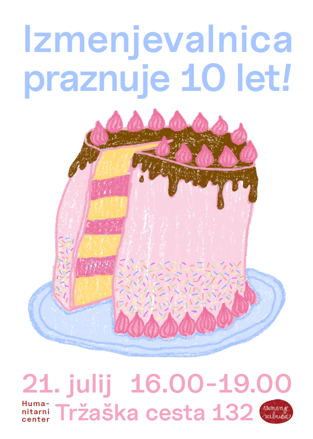 21. julija 2023 ob 16. uri bomo obeležili že 10. rojstni dan Izmenjevalnice! Humanitarni projekt RKS-OZ Ljubljana naslavlja družbeno odgovornost, trajnostno delovanje in ekološko osveščenost. Ideja Izmenjevalnice se je oblikovala zaradi, na eni strani velike količine doniranih rabljenih oblačil, ki so ostajala v Humanitarnem centru Rdečega križa, ter enoličnosti prehranskih paketov pomoči Rdečega križa na drugi strani. Pridite v Humanitarni center na Tržaški cesti 132 v Ljubljani in izmenjajte trajne prehranske izdelke ali izdelke za higieno oz. čistila z rabljenimi oblačili in predmeti ter na ta način obogatite prehranske pakete pomoči našim uporabnikom. Prudružite se nam lahko tudi kot prostovolkje_ci! Več informacij najdete na https://www.izmenjevalnica.si/