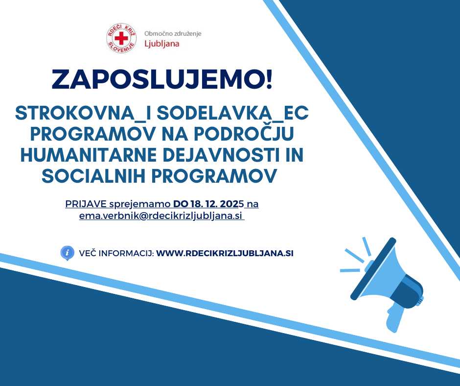 Zaposlimo: Strokovna_i sodelavka_ec programov na področju humanitarne dejavnosti in socialnih programov